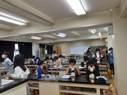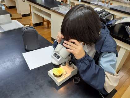 理科は、双眼実体顕微鏡を使っての観察です。