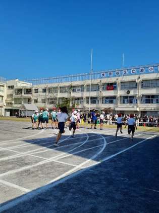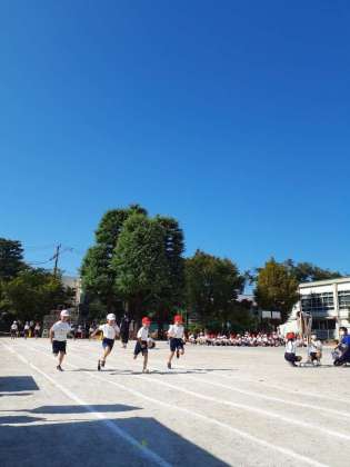 開会式が終わり、競技が始まりました。トップバッターは、2年生のかけっこです。