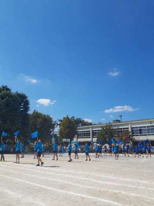 運動会14(10月1日) 公開日 2022/10/01 更新日 2022/10/01 今日のできごと プログラム13 5年生による表現 響け、群青〜旭から世界へ〜 フラッグとダンスで、見ている人を魅了しました。