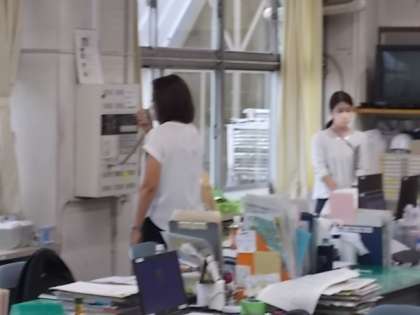 始業前に地震発生の想定で実施、天候不順のため廊下前まで避難を行いました。