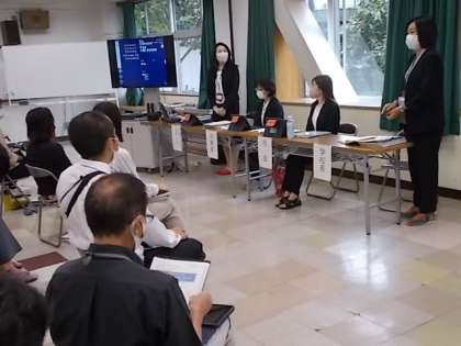 研究授業の後は、協議等を行うとともに他地区指導担当課長を招聘し指導を受けました。