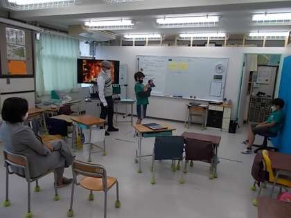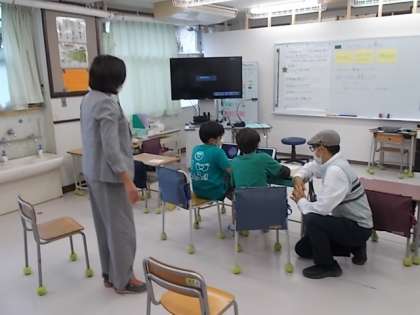 授業の様子(10月14日) 公開日 2022/10/14 更新日 2022/10/14 今日のできごと ひまらや学級(高学年)の5校時の様子です。 総合的な学習の時間 単元名「映画をつくろう」本時の目標「タブレットを使ったブルースクリーンの基本的な操作を身に付けることができる」