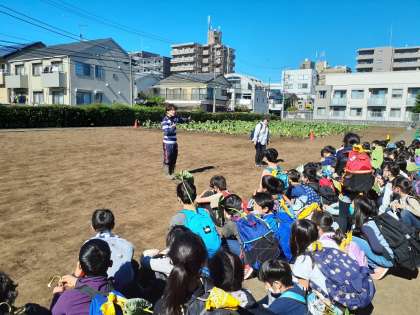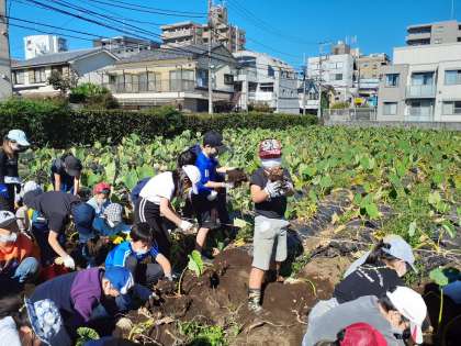 今日は秋山農園へさといもほりに行きました。前半は、野菜作りについて質問をしたり、さといもほりの仕方を聞いたりしました。