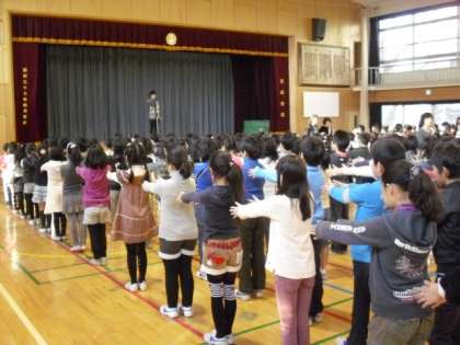 新しい年が、そして3学期が始まりました。始業式では、年末・年始の日本の伝統的な行事のこと、また年末に町会の皆さんと「火の用心」の声かけ安全ボランティアを行った本校の子ども達の話をしました。生活指導主任からは、校庭で遊ぶと「こ・ころがスッキリ。う・んどうして体力アップ。て・いこう力アップ。い・っぱい友達ができるよ」という話がありました。今年も、皆様のご理解・ご協力をいただき、優しく元気な子どもを育むよう努めます。どうぞよろしくお願いいたします。