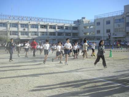 1/12 持久走 公開日 2012/01/12 更新日 2012/01/12 今日のできごと 寒い寒い朝でした。息が白くなりました。しかし、旭の校庭には、半そで半ズボンの子ども達が集合。今日の運動朝会は、持久走です。全校児童が5分間走を行いました。走り終えた後は、「楽しかった。」「もう少し走りたかった。」と話している子ども達もいました。うがい・手洗いをしっかり行い、元気な1日がスタートしました。