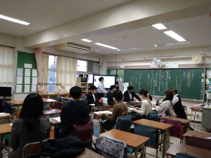 響きの学び舎4校(駒留中、中丸小、駒繋小、旭小)の教員による合同研修会がありました。中丸小学校で授業参観した後、各教科ごとに集まり意見交換をしました。今年度、学び舎では、「読み解く力」「活用する力」の育成を視点にすすめています。三学期は、旭小学校が会場校です。今日の協議を授業改善に役立てていきます。