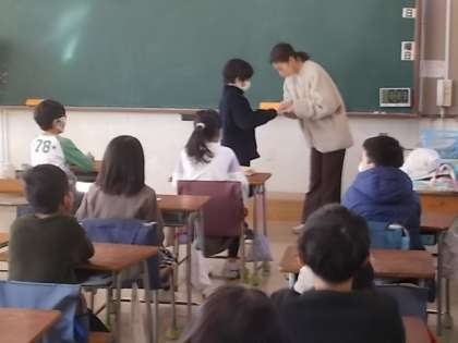 どの学級も、担任から通知表を手渡されたり、2学期の振り返りや冬休みの生活について話をしたりしました。