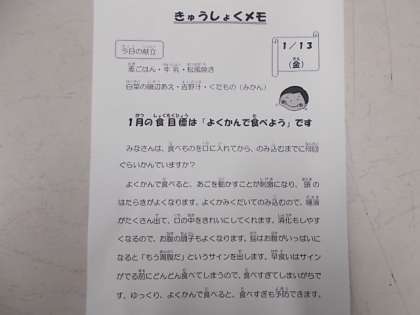 献立は、麦ごはん、牛乳、松風焼き、白菜の磯辺あえ、みかんでした。