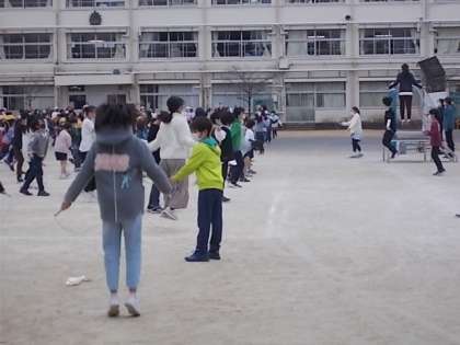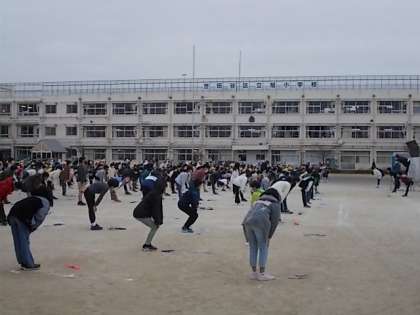 運動朝会(1月14日) 公開日 2023/01/14 更新日 2023/01/14 今日のできごと 土曜授業日の朝は運動朝会です。 今日はまず、体育委員会から今後の委員会の取り組みについて全校に紹介しました。 その後準備運動をして、縄跳びに取り組みました。