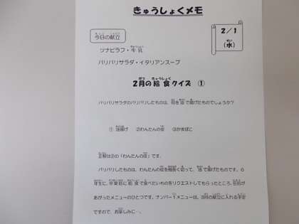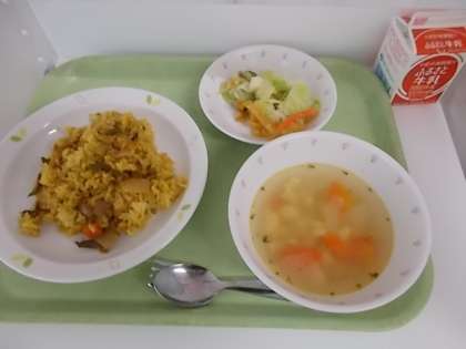 献立は、ツナピラフ、牛乳、パリパリサラダ、イタリアンスープでした。