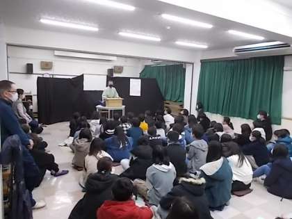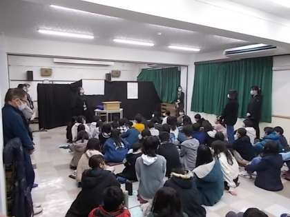 卒業祝いお話し会(2月28日) 公開日 2023/02/28 更新日 2023/02/28 今日のできごと 6年生の2校時の様子です。 影絵、琵琶演奏、講談を楽しみました。 クッキーズの皆様により企画いただきました。