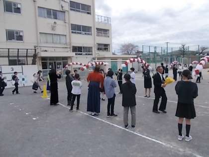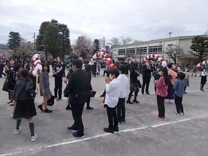 前日までの雨も上がり、5年生の花のアーチをくぐり旭小学校を巣立っていきました。