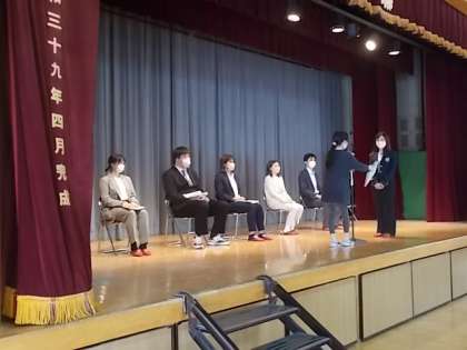 13時30分より体育館に2〜6年生が集まり、離任式を行いました。