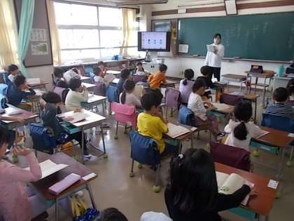 1年生の5校時の様子です。入学してから初めての5校時です。