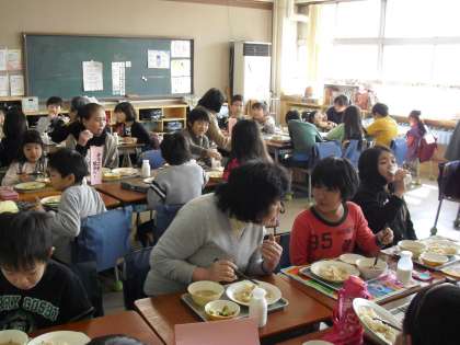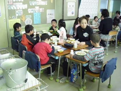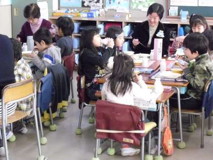 2/24 ふれあい給食 公開日 2012/02/24 更新日 2012/02/24 今日のできごと 地域の方をお招きして、昔遊び交流会とふれあい給食を行いました。子ども達は、今日のふれあい給食を前日より心待ちにしていました。丁寧な言葉遣いを心がける子ども達の姿は、ほほえましいものでした。昔遊び交流会の話に花が咲き、授業のことや普段の生活の話なども聞こえてきました。地域の皆様、子ども達、それぞれに笑顔が見られ、よい交流をさせていただいたと思います。ありがとうございました。