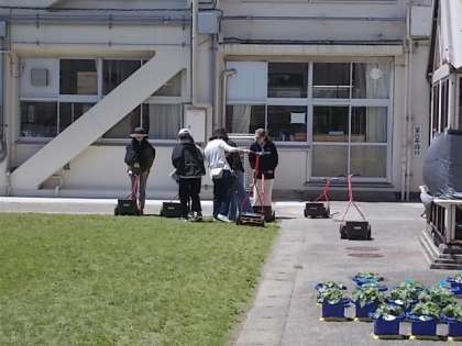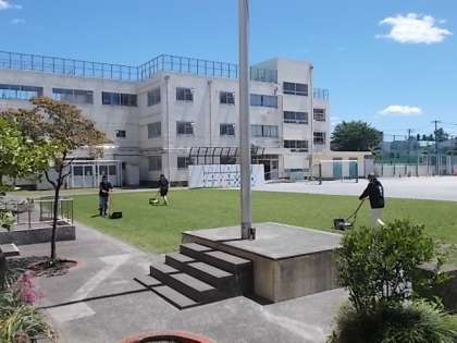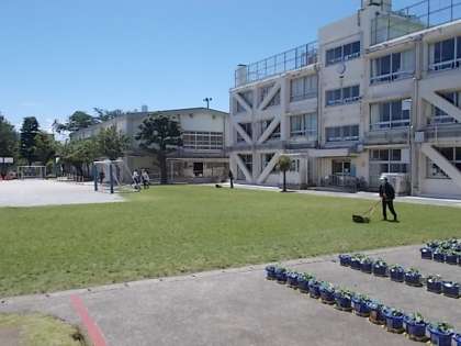 PTAによる芝刈りが始まりました。6年生の保護者の皆様、ありがとうございます。