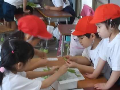 さやむき(5月26日) 公開日 2023/05/26 更新日 2023/05/26 今日のできごと 1年生が1校時にグリンピースのさやむきをしました。 本日の給食に使用されます。 (写真は3組の様子です。)