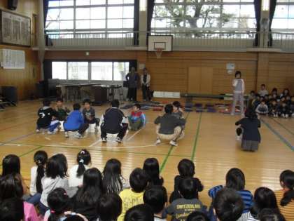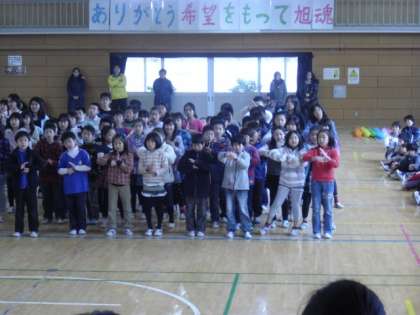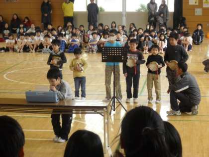 3/ 1 6年生を送る会[2] 公開日 2012/03/01 更新日 2012/03/01 今日のできごと 3年生は「6年生に挑戦」ということで、バランスや早口九九などの勝負を挑みました。4年生は手話をそえて「ビリーブ」の合唱を、ひまらや学級は、ハンドベルやトーンチャイムを使って「聖者の行進」の合奏を贈りました。