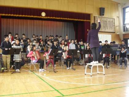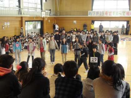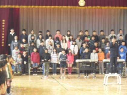 3/ 1 6年生を送る会[3] 公開日 2012/03/01 更新日 2012/03/01 今日のできごと 5年生は、組み体操の思い出や昨年の学芸会で卒業生達が演じた「ユタと不思議な仲間達」を劇にし劇中歌「すてきな友達」をそえて贈りました。6年生からはリズムをとるのが難しい曲「残酷な天使のテーゼ」が披露されました。6年生の合奏を聞いた子ども達は「すごい」「かっこいい」と声をあげていました。「6年生を送る会」後半は、全校で「6年生クイズ」を楽しみました。