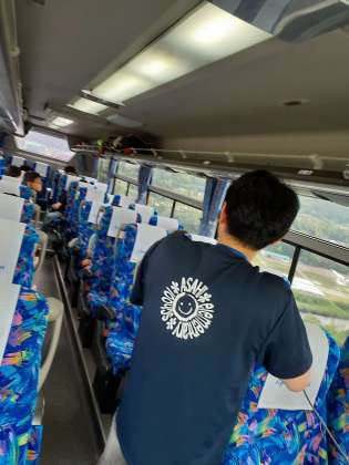 1号車は、いったんビデオを止め、車窓から沼田周辺の土地の作りについて、担任の先生からお話を聞きました。