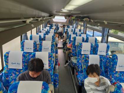 一号車は、寝ている人が多く、起きている人も気遣ってか静かに過ごしています。二、三号車はどんな風にすごしているかしら。