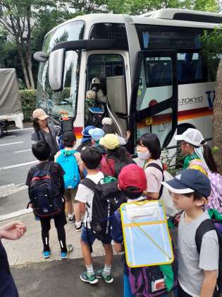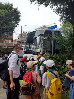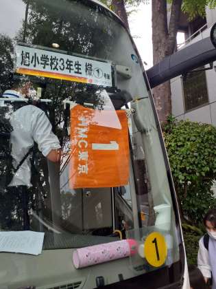 区内めぐりはバスで行きます。運転手さん、ガイドさん、よろしくお願いいたします!