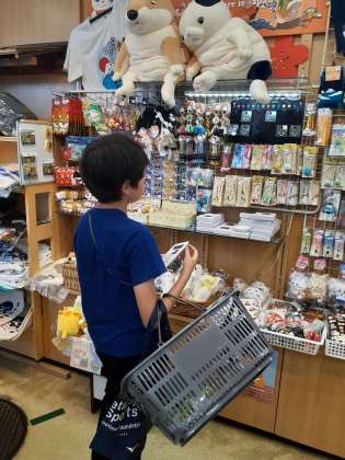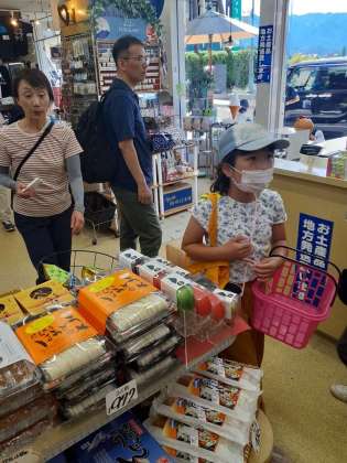 みはらし亭でお土産を買いました。電卓を使い、上手に買い物できたようです。
