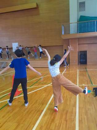 自己紹介したあとは、「サチアレ」に合わせ、ダンスをしました。