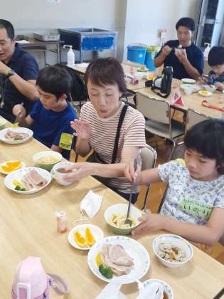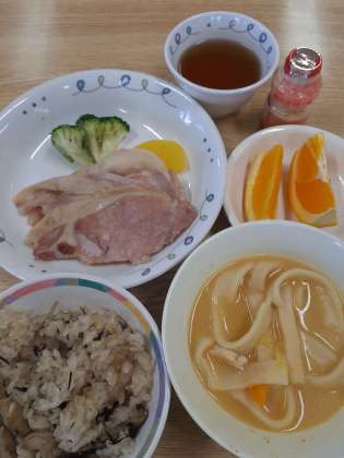 夜ごはんです。今日は、山梨名物のほうとうが出ました。