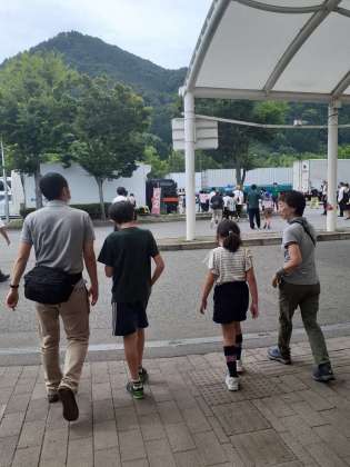 他の学校とはここでお別れ。三宿小と一緒に帰ります。