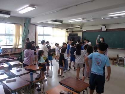暑さ対策で、事前にすべての班が屋内での活動に変更しました。