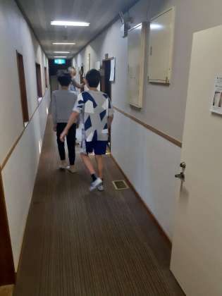 おはようございます。6時の時点で男子の部屋は既に検温、ふとんをたたみ始めていました。