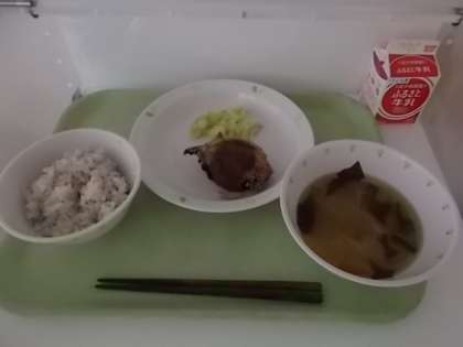 献立は、ゆかりごはん、牛乳、和風コロッケ、ボイルキャベツ、みそ汁でした。