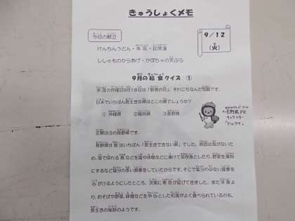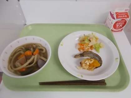 献立は、けんちんうどん、牛乳、即席漬、ししゃものからあげ、かぼちゃの天ぷらでした。