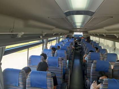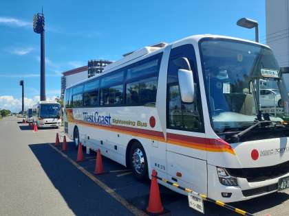東扇島東公園に到着しました。日陰がないので車内で昼食です。
