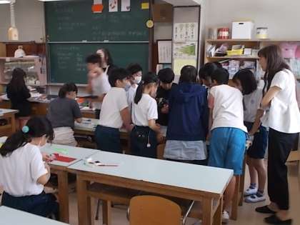 本時の目標「布を用いた物の製作について、解決方法を考え、工夫している。」