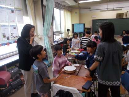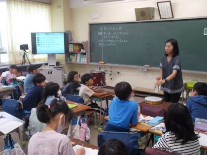 本時の目標「楽器を使って音を出し、不思議に思ったことや気付いたことを話し合い、問題を見出す。」