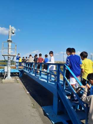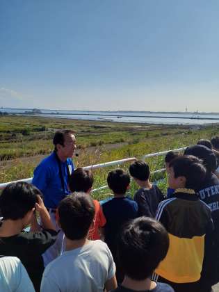 現在、つくられ、使われている新海面処分場について、見晴らし台から見学しました。