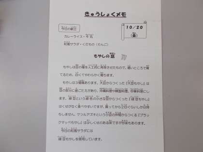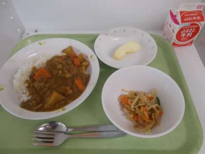 献立は、カレーライス、牛乳、和風サラダ、りんごでした。