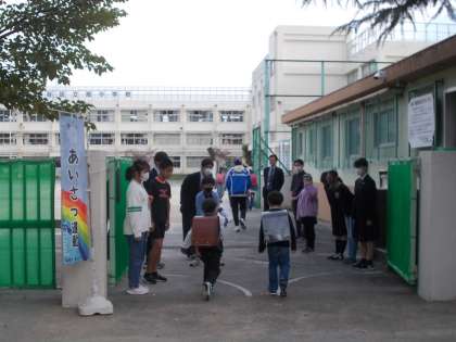 あいさつ週間は今週いっぱい続きますが、駒留中学校生徒のみなさんとは今回は今日が最後です。最後に代表委員からお礼をしました。