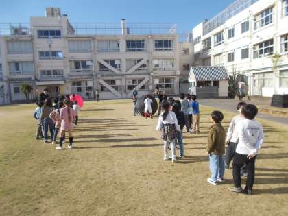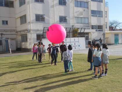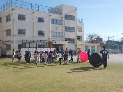 「芝生の上deキンボール」(12月9日) 公開日 2023/12/09 更新日 2023/12/09 今日のできごと 旭の庭わくわく隊主催による「芝生の上」のイベント、今回はキンボールです。 PTA役員のご助力にも感謝いたします。