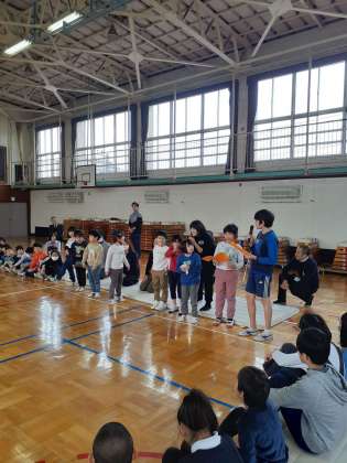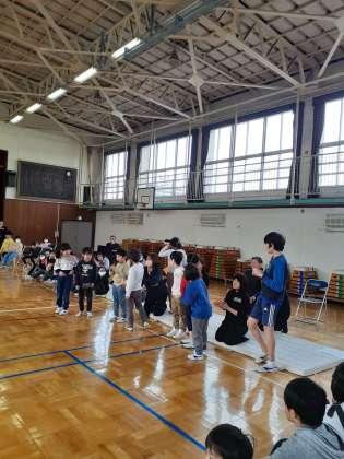 学校紹介では、一人一人名前を言い、ポーズをかっこよくきめました。