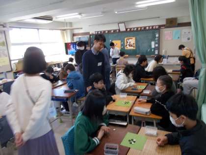 2組1,2校時、1組3,4校時は、日本の伝統文化に親しませるのに、ゲストティーチャーを招聘し「囲碁教室」を行います。