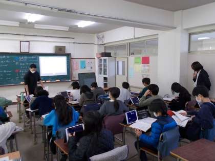 授業の様子(1月22日) 公開日 2024/01/22 更新日 2024/01/22 今日のできごと 5年算数(ステップコース)3校時の様子です。 単元名「四角形や三角形の面積」 本時の目標「三角形の底辺と高さの関係を理解する」