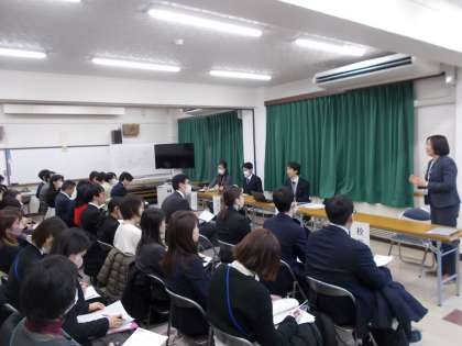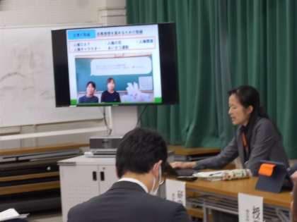 人権課題に関する研修(1月26日) 公開日 2024/01/26 更新日 2024/01/26 今日のできごと 授業公開後の協議会では研究主任より本校の人権教育についてプレゼンテーションを行うとともに、授業者より自評等行いました。
