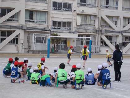 授業の様子(2月1日) 公開日 2024/02/01 更新日 2024/02/01 今日のできごと 4年1組の4校時(体育)の様子です。 単元名「タグラグビー」 本時の目標「ボールを持って走る、ボールをパスする、ボールを捕るなどの簡単な技能を身に付けることができる。」