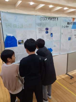 最後に格技室で開催されている駒留ルネサンス学習作品展を見学しました。