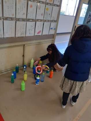 6つのレベルを作り、いろいろな学年が楽しんで輪投げができるようしています。