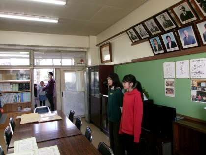 次に、水道週間作品コンクール、新春五色百人一首大会、ミニバスケットボール大会の表彰があり、最後に看護当番の教員から、先週から引き続きの生活目標「身の回りをきれいにしよう」について話がありました。