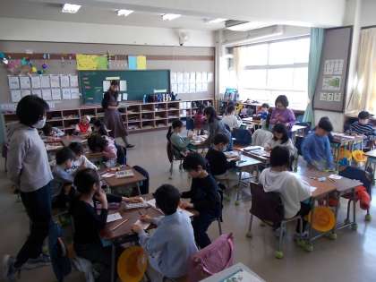 1年1組、こもれび学級1年の4校時(生活科)の様子です。